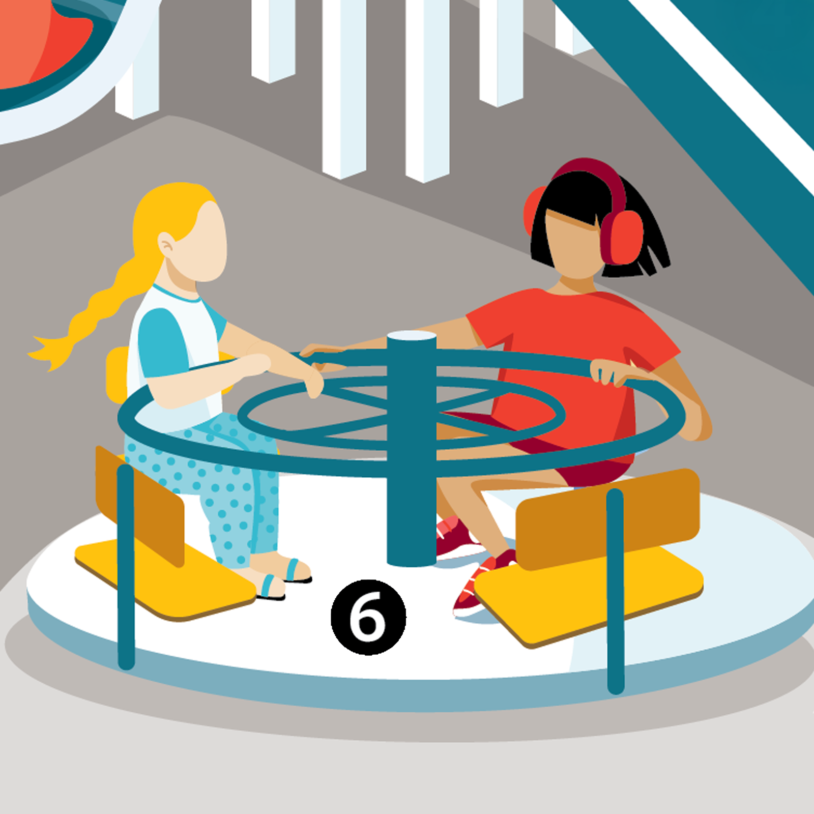 Check out the examples below to learn more about the features of inclusive playgrounds. There are many different ways to build an inclusive playground. What your community needs and wants to make a playground inclusive might be different. The examples are not listed in order of importance.